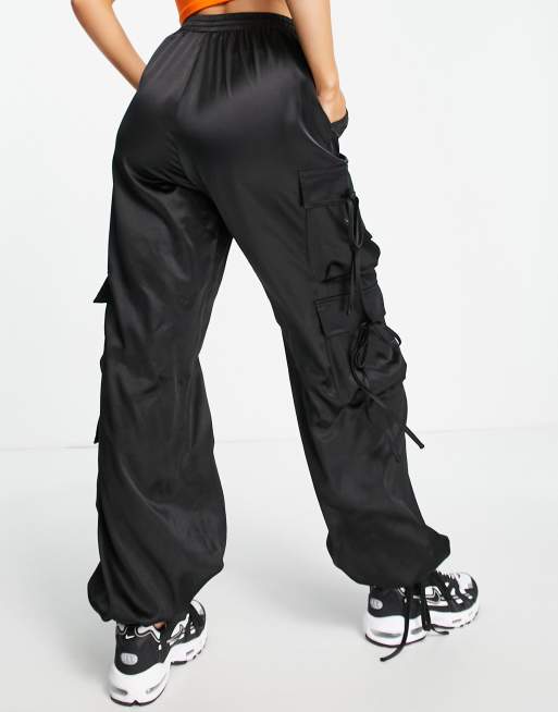 Product id: Black satin cargo 2024 pants