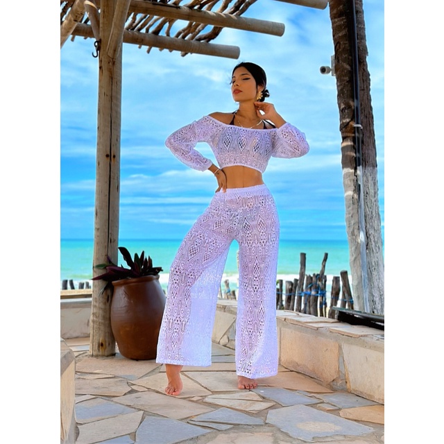 Product id: Calça pantalona com 2024 cropped de renda