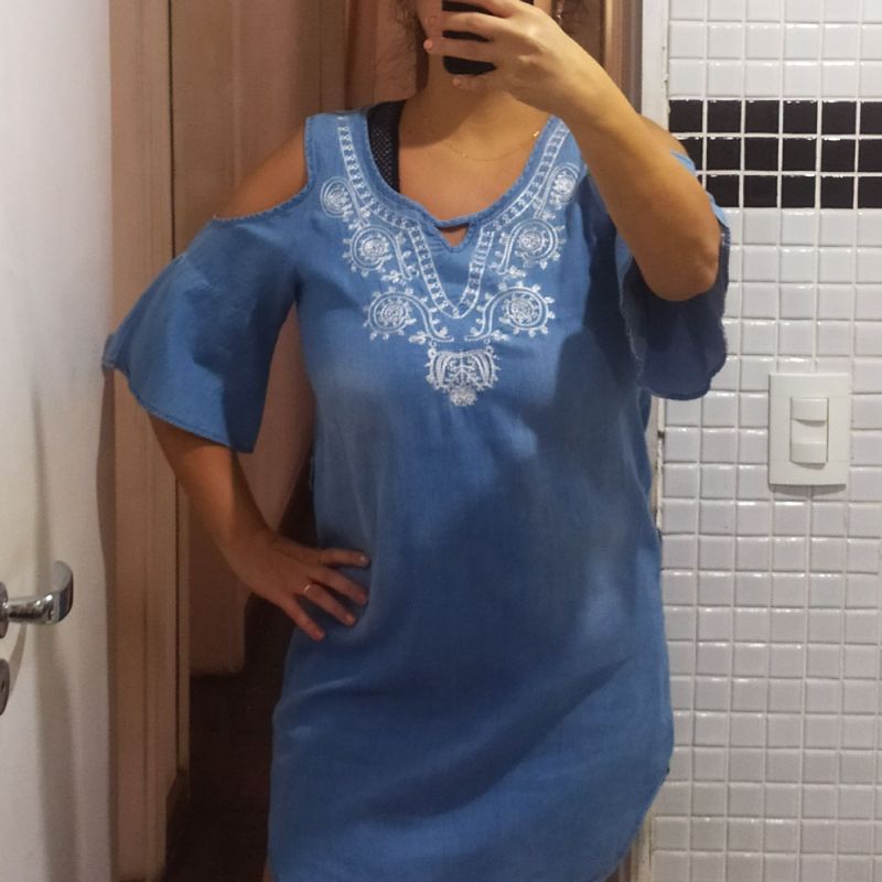 - vestido jeans ombro vazado