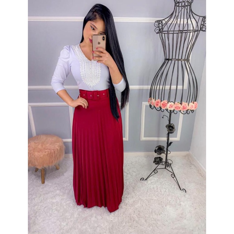 Product id: Saia longa plissada 2024 marsala