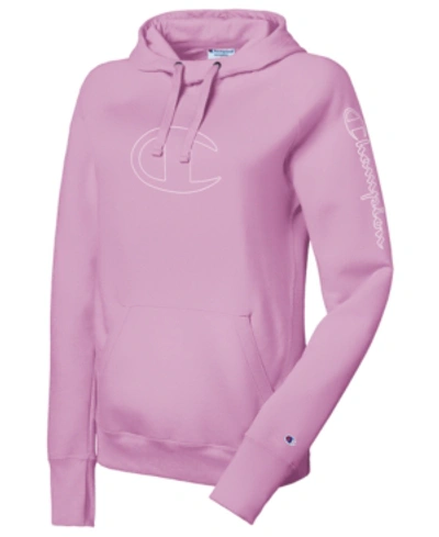 - champion stacked big c flocked pullover hoodie